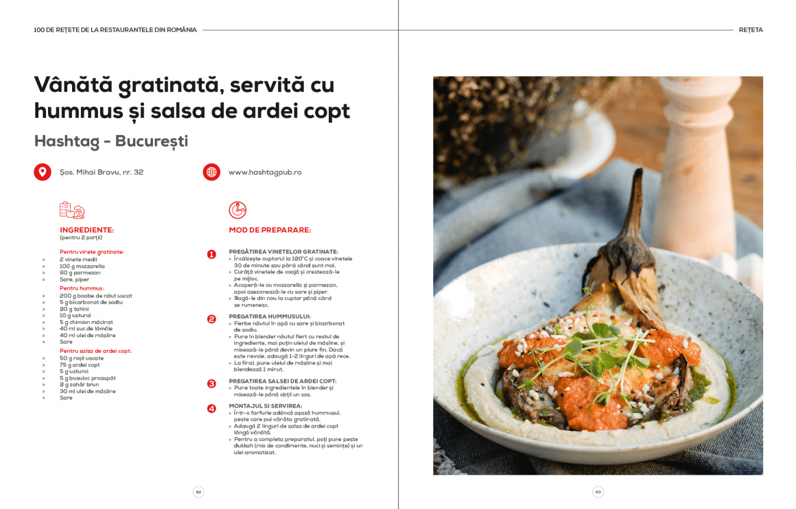De la preparate tradiționale, la altele cu totul creative și ingenioase; de la bucătăria românească, la cea asiatică, franțuzească sau mediteraneeană; de la deserturi gurmande la cocktailuri provocatoare… cartea noastră de bucate promite să devină o sursă de inspirație pentru toți iubitorii de mâncare delicioasă și băuturi deosebite, dar și o modalitate de a explora diversitatea culinară din România!