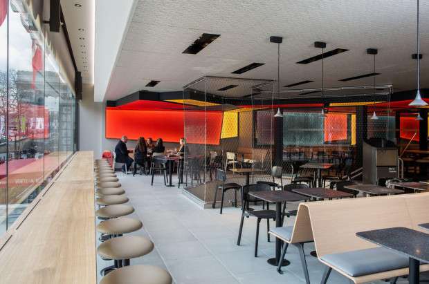 Meniul contine mult mai multe preparate “mai healthy”, iar angajatii poarta uniforme speciale, ce aduc aminte de cele ale membrilor echipajului unui avion.