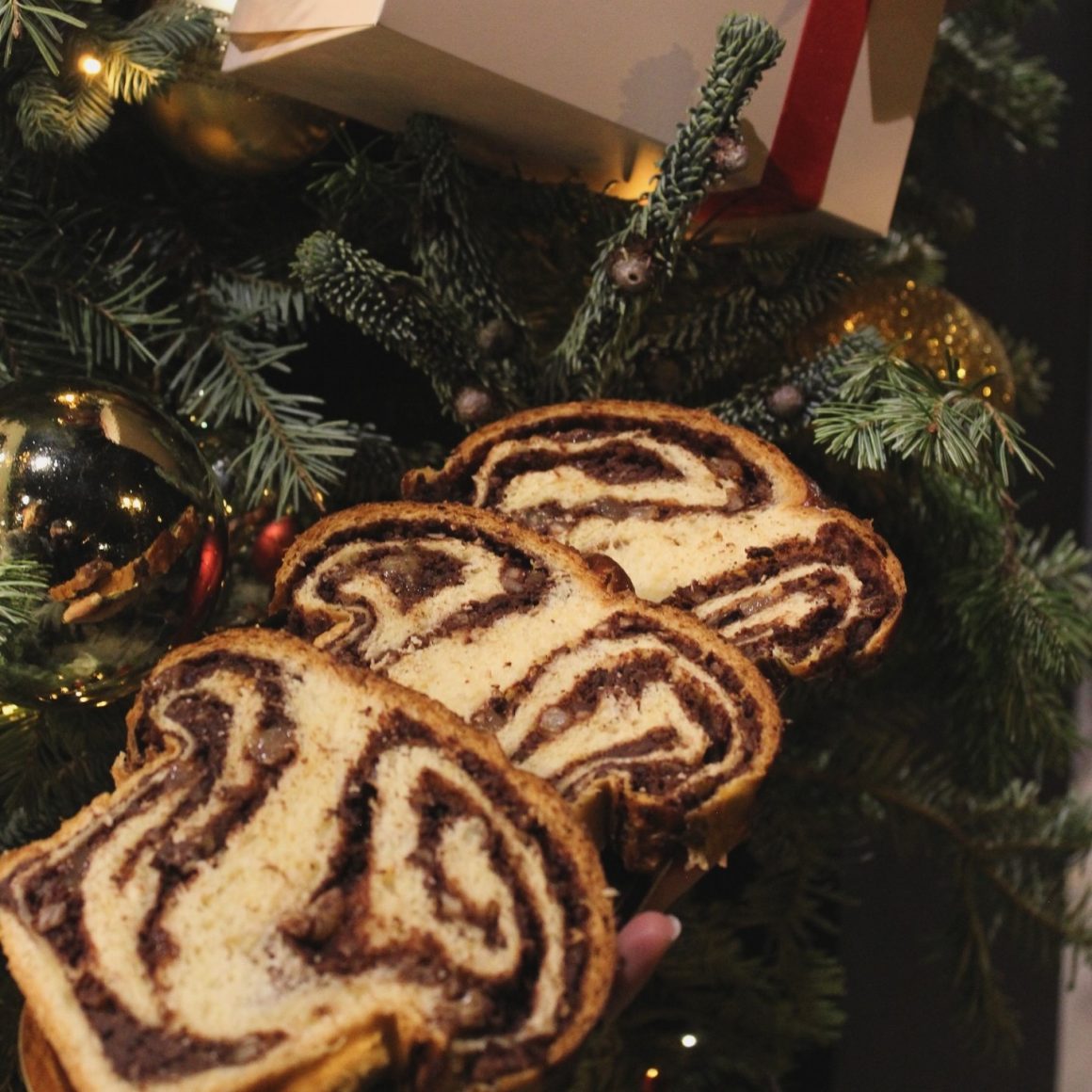 Cozonacii lor sunt delicioși, ușor însiropați și glazurați. O nebunie de neratat, cu multă umplutură cu cacao de specialitate, nucă românească și rahat de portocale, toate într-un aluat bine dospit și aromat cu stafide, coajă de portocale și portocală confiată.