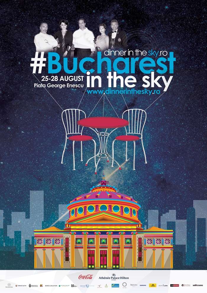 „Principalul obiectiv al Dinner In The Sky Romania este sa contribuie la cresterea vizibilitatii Romaniei in randul capitalelor europene relevante din punct de vedere turistic. In acest sens, dupa ce anul trecut am gazduit in premiera mondiala prima piesa de teatru jucata la 50 metri inaltime, anul acesta, oaspetii nostri se vor putea bucura de un duet muzical extraordinar, de o experienta fine dining la inaltime, oferita de partenerii nostri de la Athenee Palace Hilton . Suntem increzatori ca le vom oferi si anul acesta o experienta memorabila celor care decid sa urce alaturi de noi pe platforma Dinner In The Sky.”, declara Ovidiu Barbier, Manager Dinner In The Sky Romania.