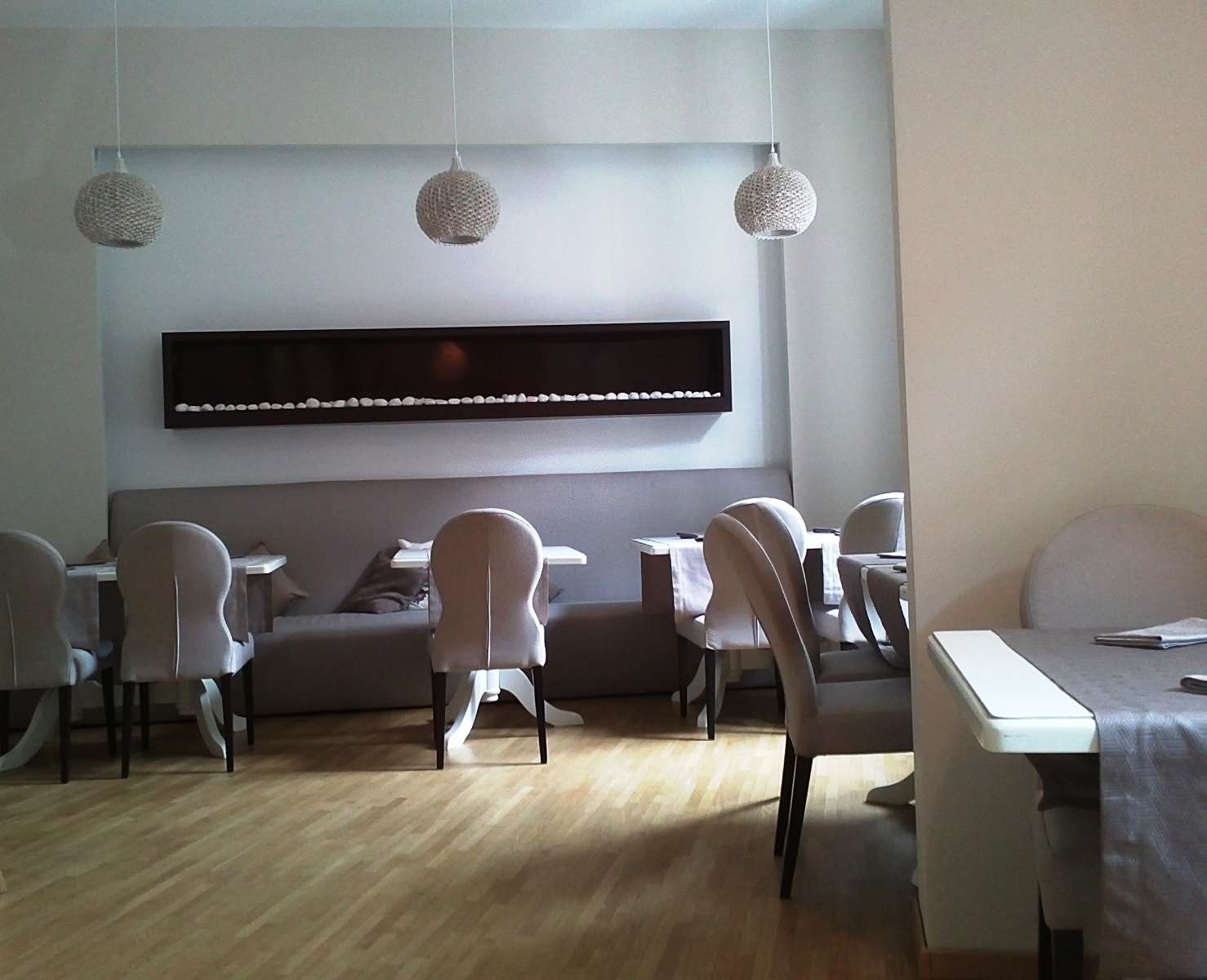 Intru si mi-am amintit de peretii albi ai fostei locatii. Pe atunci, albul tempera accentele poate prea rosii ale ambientului, insa acum era delicat evidentiat de cateva nunte de pamant, ceea ce crea o stare tihnita de dupa-amiaza de vara. Decorul minimalist, cu ceva obiecte vintage, dar nou cumparate si bine-nteles si cateva carti de literatura aruncate pe rafturile albe, mi s-a parut o alegere mai inspirata decat cea anterioara! M-a amuzat ca trona central cartea lui Andrei Plesu cu “Minima moralia”, iar noi am luat masa acolo chiar in ziua aniversarii dumnealui! Sincera sa fiu, nu stiu daca isi au locul intr-un restaurant cartile! Ideea este ca se presupune ca la restaurant merg sa mananc, daca am chef sa beau un cappuccino si sa citesc ceva, deja orasul este impanzit de cafenele, ceainarii si librarii-cafenea care te tot invita la lectura. Este de bonton sa pui si un album de arta si vreo 3-4 carti azvarlite dezinvolt, numai ca ma cam lovesc de aceiasi autori! Am remarcat, totusi, in holul central, frigiderul de vinuri, poate un reper solis al scopului acestui loc!