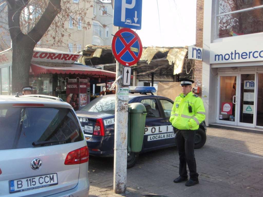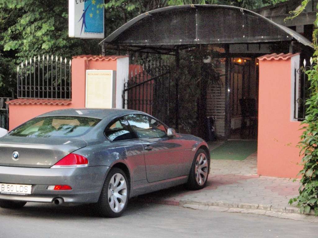 In ziua in care se va deschide in Bucuresti restaurantul cu niste usi foarte largi, prin care sa intri cu masina inauntru, direct inr-o parcare in mijlocul localului, iar mesele sa fie de jur imprejur, ei bine, acel restaurant va deveni marea atractie a Capitalei si toti ceilalti patroni de carciumi vor muri de invidie! Incercari au mai fost, insa cu preturile astea la imobiliare nu e totusi o floare la ureche… Patronul de la L’Esperance aproape reusise! Daca era usa cu cativa centimetri mai larga, am fi vazut bemveul din poza cu 3 metri mai in fata. Si la fel pe Beller, unde interlopilor de la Cafe Ambiance, din parc, nu le cade bine mancarea daca nu se suie cu masinile lor cat autobuzul pe trotuar si in statia de autobuz pana in gardul viu de la terasa, cu toate ca e plin de locuri goale de parcare peste tot acolo. La Belle Epoque, la Don Cafe si la cafenelele din zona nu mai vorbim… Dar nici Politia nu se lasa mai prejos! Cu ce au si ei in dotare, asa, cu Loganul, hop pe trotuar, pana in usa magazinului, de trebuie sa merg eu cu catelul pe strada pe unde umbla masinile, si nu pe unde credeam ca mi-ar fi locul. Si ca sa fie clar cum stau lucrurile, si-l pun fix sub semnul care arata cum trebuie parcate masinile. Il intreb pe idiotul din poza de ce in loc sa-i amendeze pe cei care parcheaza ilegal, el, politistul, e primul care incalca legea? Raspunsul a fost halucinant: « Domnu meu, dar nu e nimic ilegal aicea! » « ??? … Dar indicatorul acela ce e, semnele de circulatie sunt optionale in Beller? » « Domnu meu, semnele de circulatie sunt pentru CAROSABIL, nu pentru TROTUAR ! » « !!!… »