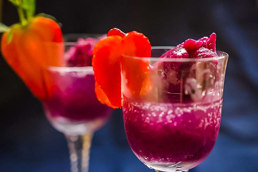 Sorbet de litchi si zmeura in prosecco