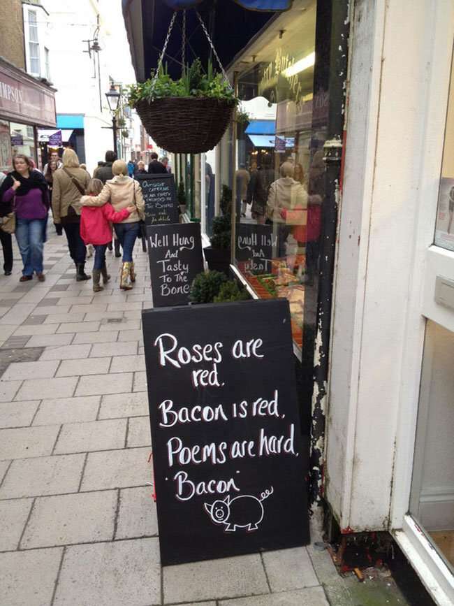 Poeziile sunt grele asa ca oamenii de la acest restaurant se rezuma la ce stiu. Bacon.