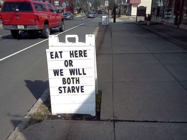 Am facut si noi o selectie a celor mai amuzante astfel de mesaje publicitare si de intampinare de la diverse restaurante si baruri. Mai jos puteti sa le vedeti pe cele care care ne-au smuls un zambet.