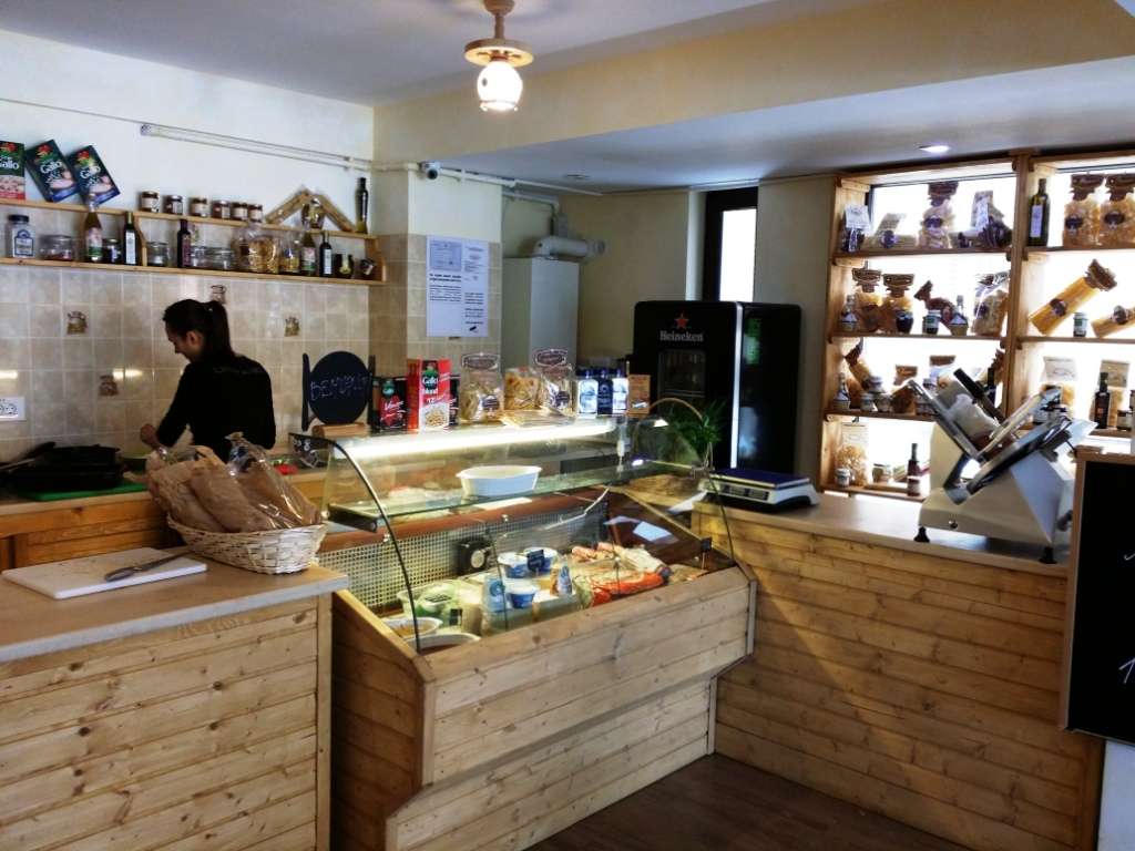 e o bacanie cu niste mese in care se poate manca ce iti alegi din galantar sau ce iti pregatesc rapid cei de acolo, sau invers, un restaurant (o “osteria) cu un mic magazin de delicatese italienesti si vinuri in el – cum vreti sa o luati.