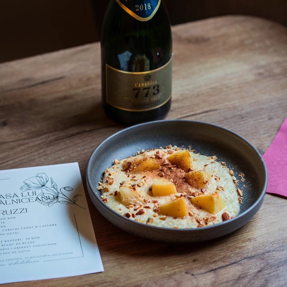 - Și de la NOUA. Bucătărie Românească am ales câteva noutăți din meniurile de toamnă. Ca de exemplu, Peștele fanariot – Corvină maturată 7 zile, cu frunză de smochine, măcriș și papușă de salate. Sau Morcovul de toamnă al Grădinii Corbilor – un morcov semi-copt cu o cremă de brânză și decorat cu arpacaș expandat, cu miere, flori de morcov și pătrunjel. Ori lotus de miel, excelent! Ca desert, te vei delecta cu „Gusturi de lapte” cu izmă și pepene, Gălușcă cu prune stinsă cu palincă și Variațiuni de fructe de pădure. Numai mergi să savurezi meniul de degustare – e o bucurie gustativă!