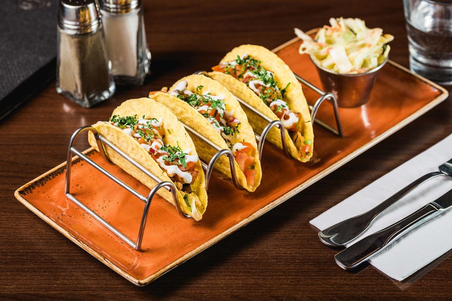Amestec usor picant din fasii de pui si legume, servit in tortilla crocanta de porumb cu sos Sriracha, salata Iceberg, pico de gallo, peste care se adauga smantana si coriandru proaspat. Servit cu salata de varza Coleslaw.