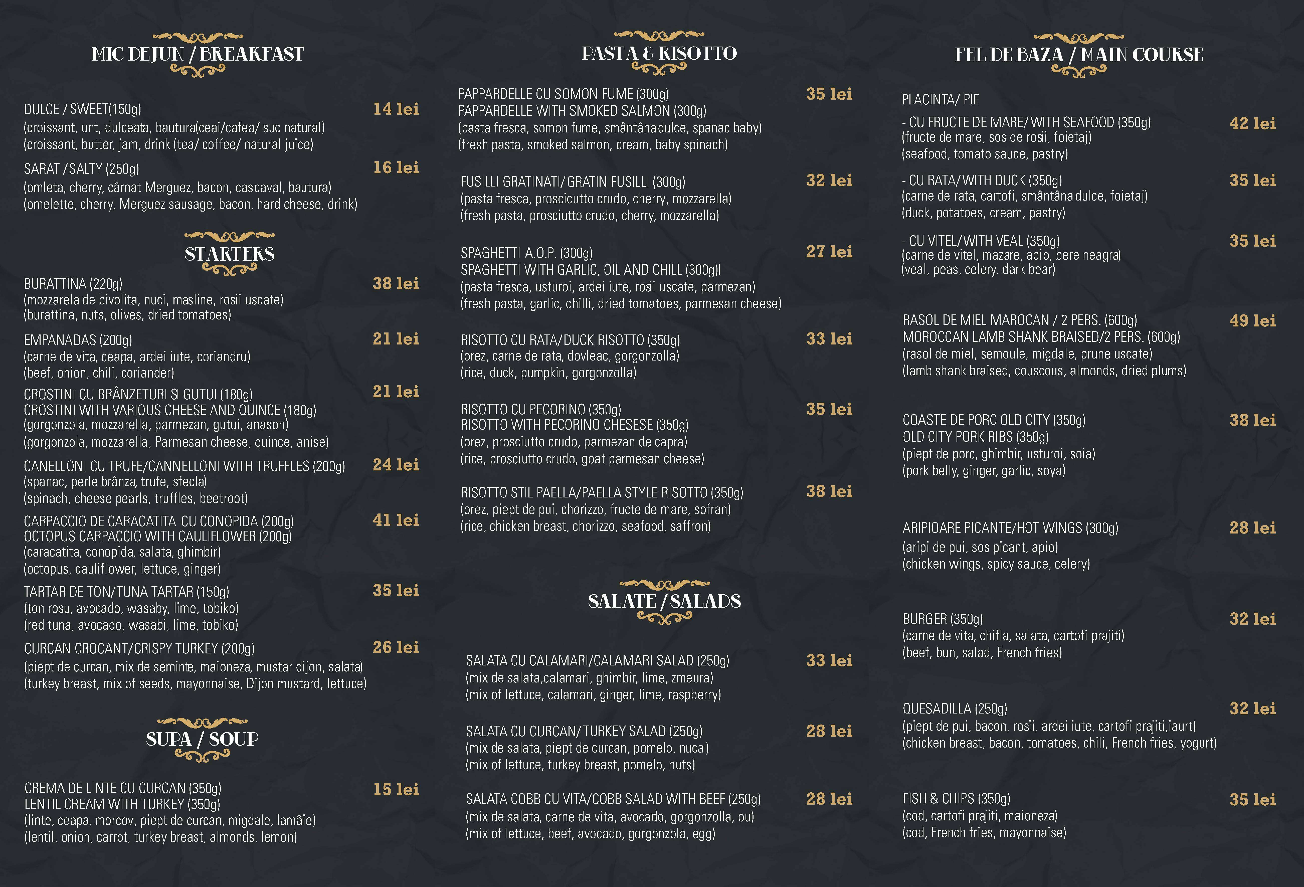 Pe Selari 14 veti gasi una din cele mai pretentioase bucatarii din Centrul Vechi. Bucatarul sef, Nicolae Vasile (TopChef), a conceput un meniu specific unui gastro-pub urban care se ridica la cele mai inalte standarde.
