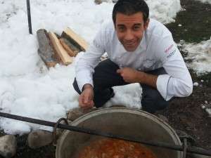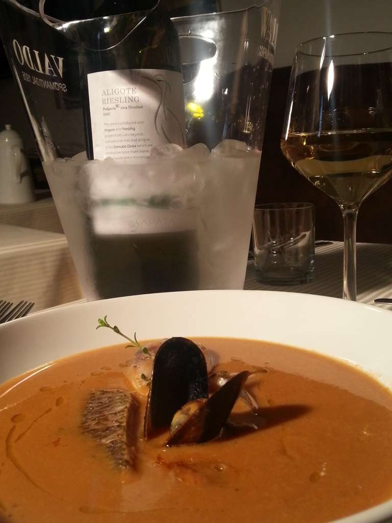 Acest univers m-a inspirat in creatia dedicata oamenilor Deltei – Supa de peste Delta Dunarii. Am ales 7 tipuri de peste: scrumbie, platica, rositori, crap, caras, hanus si salau. Bucuresti este departe de pescarii nostri, insa aventura noastra a inceput de dimineata, in Piata Obor, unde oamenii locului va asteapta cu zambetul pe buze, bucurosi sa va ajute in alegerea pestilor si pregatirea lor – daca sunteti pasionati de bucatarie cu atat mai mult. Pentru aceasta reteta am cautat un vin cu aceeasi provenienta teritoriala, un raport bun intre calitate si pret – am ales La Sapata – Riesling Aligote, din podgoriile Sarica Niculitei. Am intrebat-o pe Carmen ce imi recomanda din aceasta regiune a Romaniei? L-am gustat si mi-a placut – o buna combinatie intre aroma si aciditate – asociere geografica perfecta. Recomandarea mea este ca vinul servit sa fie acelasi ca cel folosit pentru pregatire.