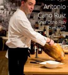 Drintre specialitatile create de Chef Marcos la Osho Fish se pot enumera Calcan la gratar cu sos de prosecco si creveti, Midii in sos pescator cu vin Sauvignion Blanc, Creveti din Almeria in pat de sare la gratar, Creveti jumbo cu sos de usturoi si ceai de menta, Caracatita la gratar cu paprica picant si cartofi la gratar, Calamar la gratar cu mix de salata si sos de patrunjel, usturoi si ulei, Jamon de Almeria cu creveti, Calcan file in sos de sofran si ciuperci.