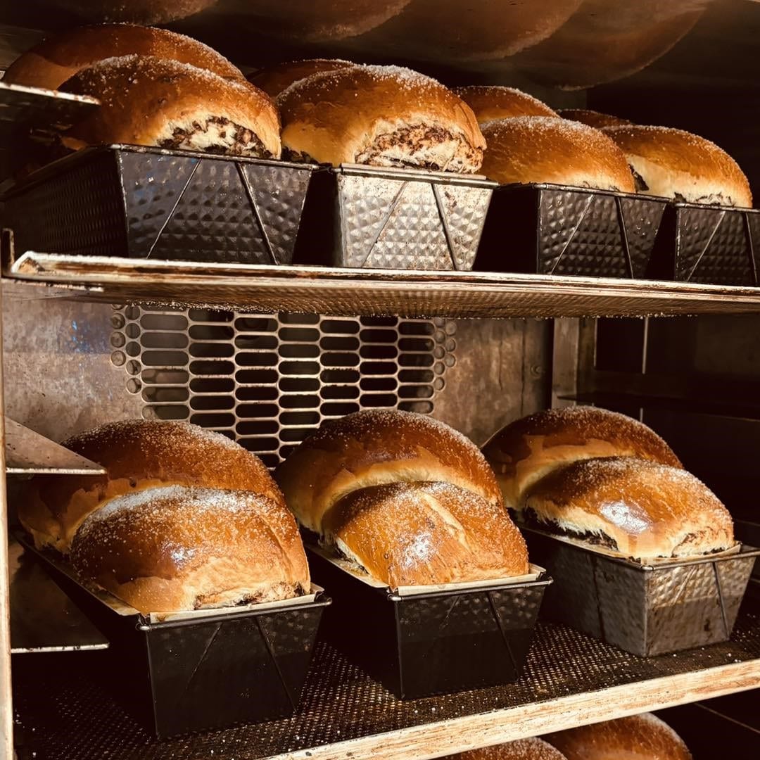 Apropo de cozonac, au și așa ceva… Îi fac după o rețetă vechi și sunt cu nucă, stafide și cacao. Dolofanii aromați sunt aproape gata de ieșit din cuptoare! (94 lei / 1.2 kg).