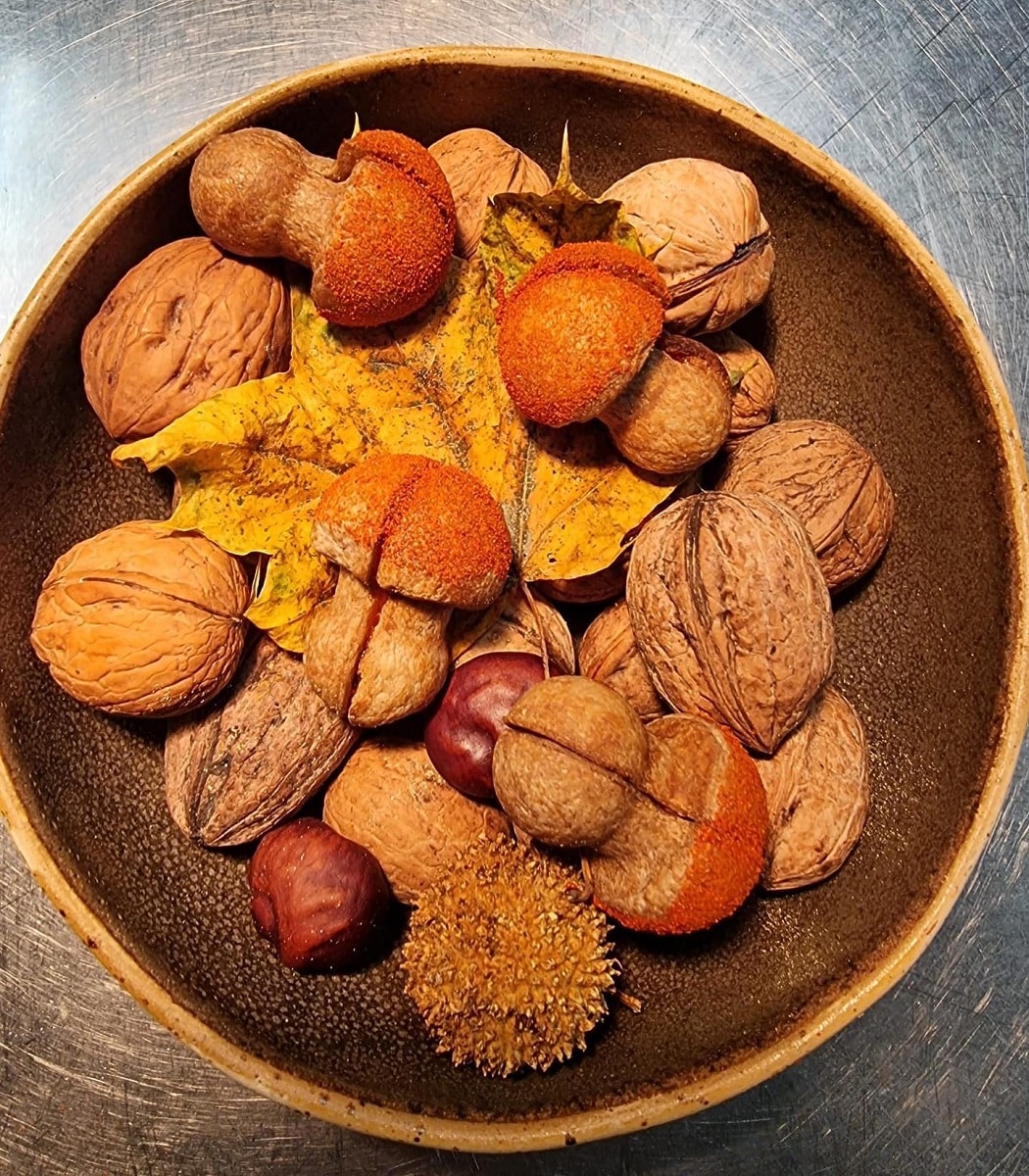 • Dulcele imprevizibil – creier de vițel, fructe de pădure de sezon, crumble copt la lemne, busuioc rosu și verde.