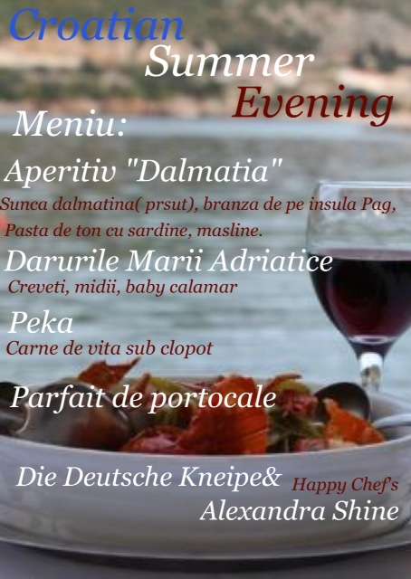 Unul din cele mai bune restaurante bucurestene cu bucatarie germana, daca nu chiar cel mai bun restaurant cu acest specific, gazduieste o seara tematica dedicata bucatariei croate. Astfel, la restaurantul Die Deusche Kneipe sunteti asteptati la o seara croata, un eveniment culinar unde puteti degusta preparatele Croatiei.