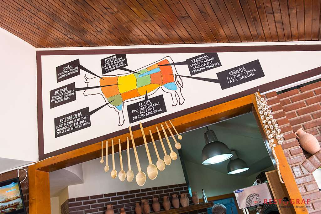 Acum vreo 2 ani, Mariana si tatal ei s-au hotarat sa construiasca un steakhouse in parc. S-au apucat de treaba si au ridicat aceasta cladire in forma de ciuperca, o constructie circulara, cu geamuri peste tot si cu bucataria la vedere. Au desenat peretii in stilul unui steakhouse autentic, ele fiind si acum prezente pe peretii restaurantului cu tot cu legenda unei vite si partile animalului care sunt delicios de mancat.