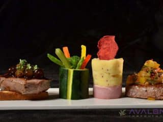 Atentia pentru diversitate este insotita, ca intotdeauna la Avalon, de o mare finete a asocierilor si a ingredientelor folosite, astfel incat gustul preparatelor sa ramana unul nobil, chiar daca preparatul in sine este unul popular, cunoscut la nivel de bucatarie internationala. Tartarul de vanat este aromat cu cognac, foie de poule este aromat cu gel de vin condimentat, somonul este insotit de radacina de lotus, halibutul de sos de portocale si coacaze, samd.
