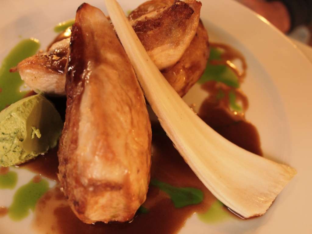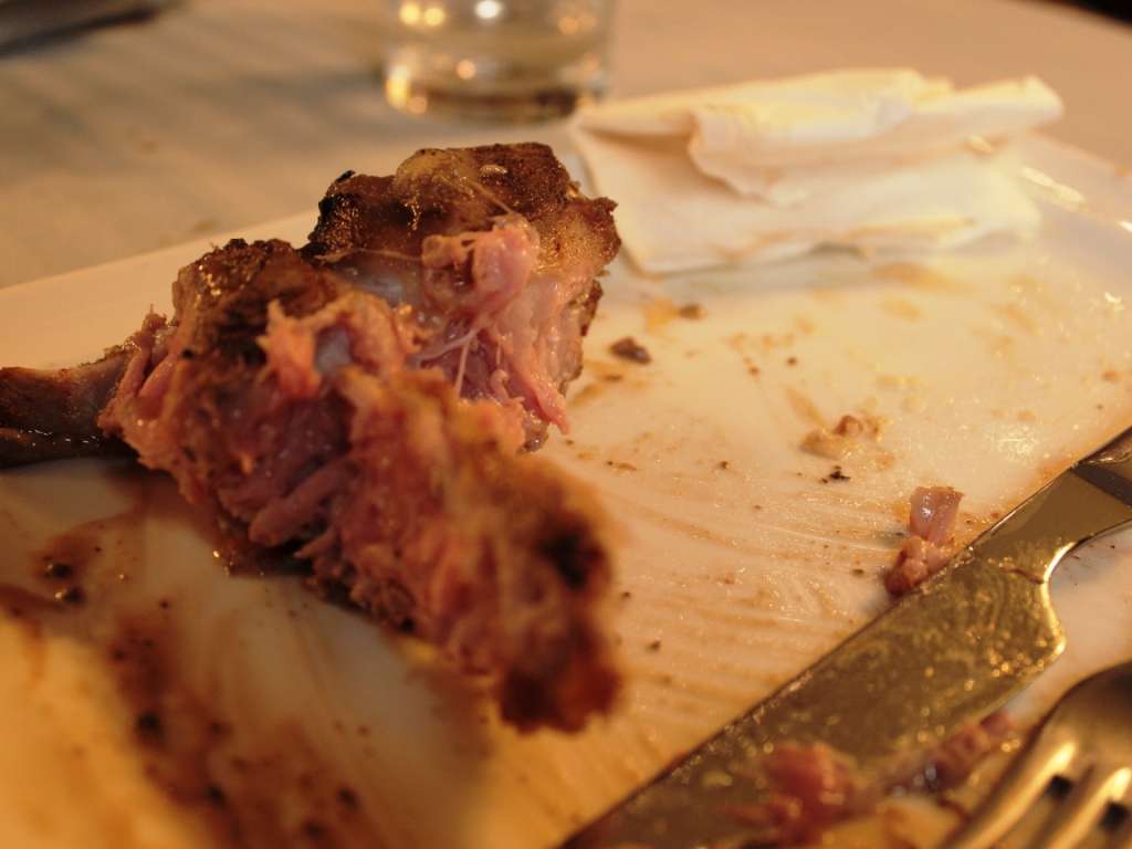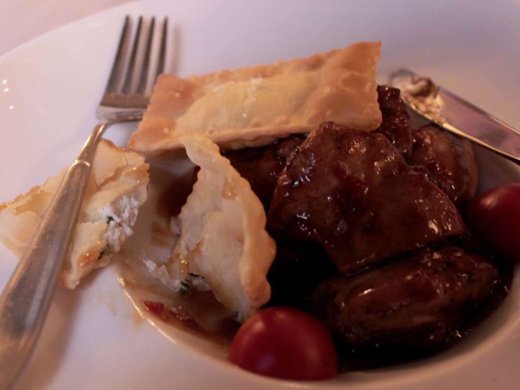 Am avut tacamuri, ca-n orice locanta europeana, dar am ales sa devoram aperitivele cu mana, intr-o simplitate paradiziaca, de-nceput de lume. Ne-am folosit degetul mare, aratatorul si mijlociul, ca pe niste betisoare, pentru a le cuprinde si a le arunca energic in gura. Experienta a fost completa, astfel incat asteptarea felului urmator devenea chiar palpitanta. In asteptarea felului principal, aperitivele ramasesera o amintire placuta, culcusita undeva-n ceru’ gurii.