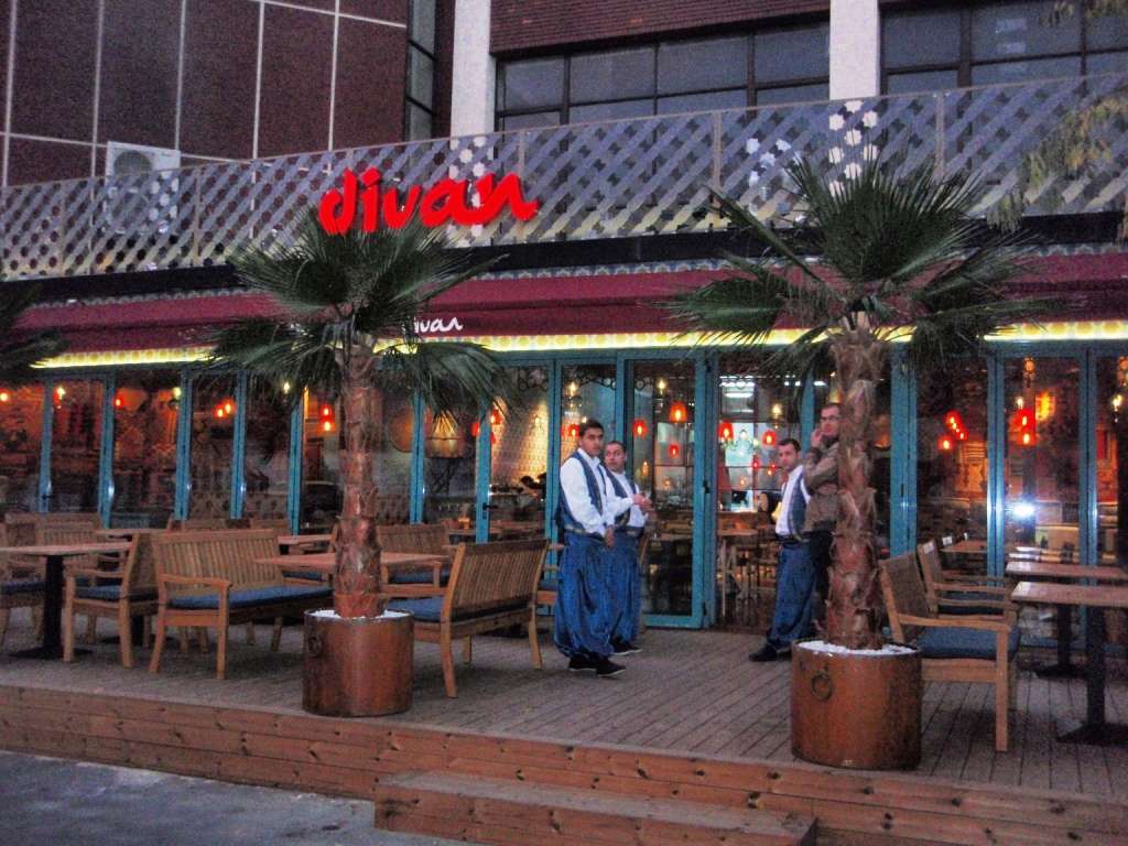 Divan e deschis de mai putin de un an in centrul vechi al Bucurestiului, pe strada Franceza, in una dintre casele in care nu ati vrea sa fiti cand va veni cutremurul. S-au bagat ceva bani in amenajare si au reusit sa creeze o oarecare atmosfera orientala, chiar daca nu una din alta lume, despre care citesti doar in carti sau pe care o vezi in filme, ci o mica Turcie a zilelor noastre, in care mai inlocuiesti lemnul masiv cu cel stratificat si fierul cu plastic, pe ici, pe colo. Dupa cum era de asteptat, predomina culorile inchise, cu mult cafeniu si visiniu.