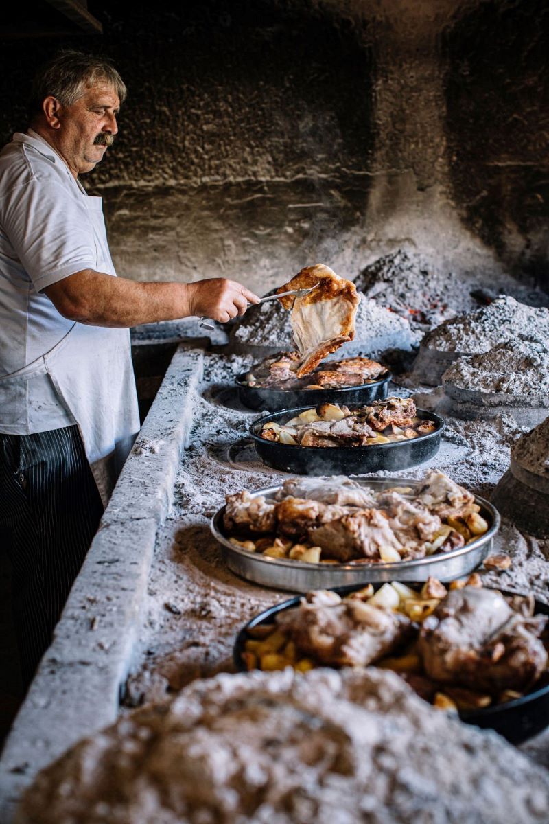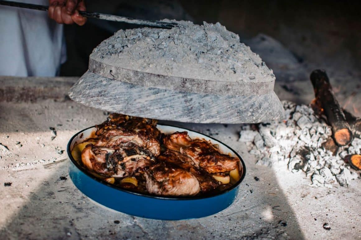 Un preparat în care bucăți mari de carne – de vită, de vițel, miel, porc sau, eventual, un amestec de cărnuri, cu sau fără os. Sunt puse într-o tigaie specială, care e fie din metal, fie din ceramică. Și peste ele se adaugă ceapă feliată, cartofi, uneori roșii, ardei dulci, dovlecei și usturoi. Vinul alb sau berea pot fi adăugate la acest amestec, dar și rozmarin, dafin, boia de ardei și piper negru. Se pune capac la tigaie și se acoperă cu jar, într-un cuptor, unde va fierbe molcom. Cel puțin 3 ore.