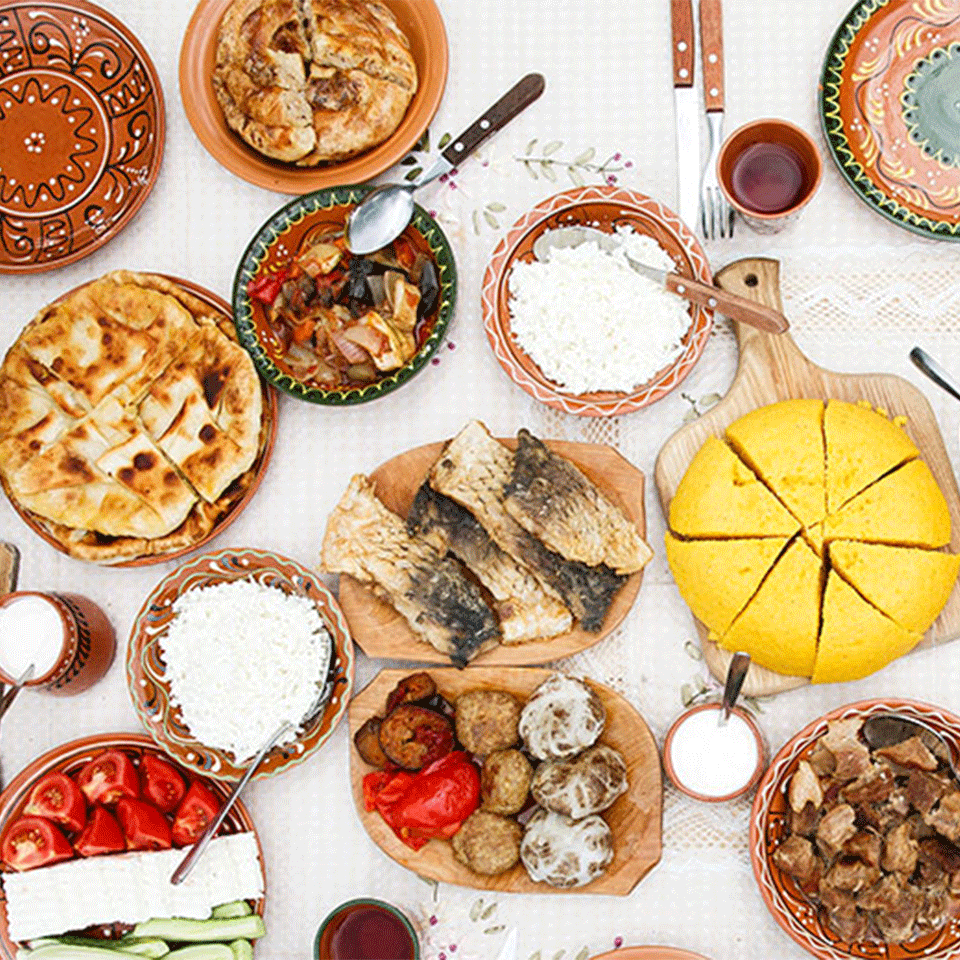 “full menu of classic Romanian dishes, with platters of the above featured prominently”