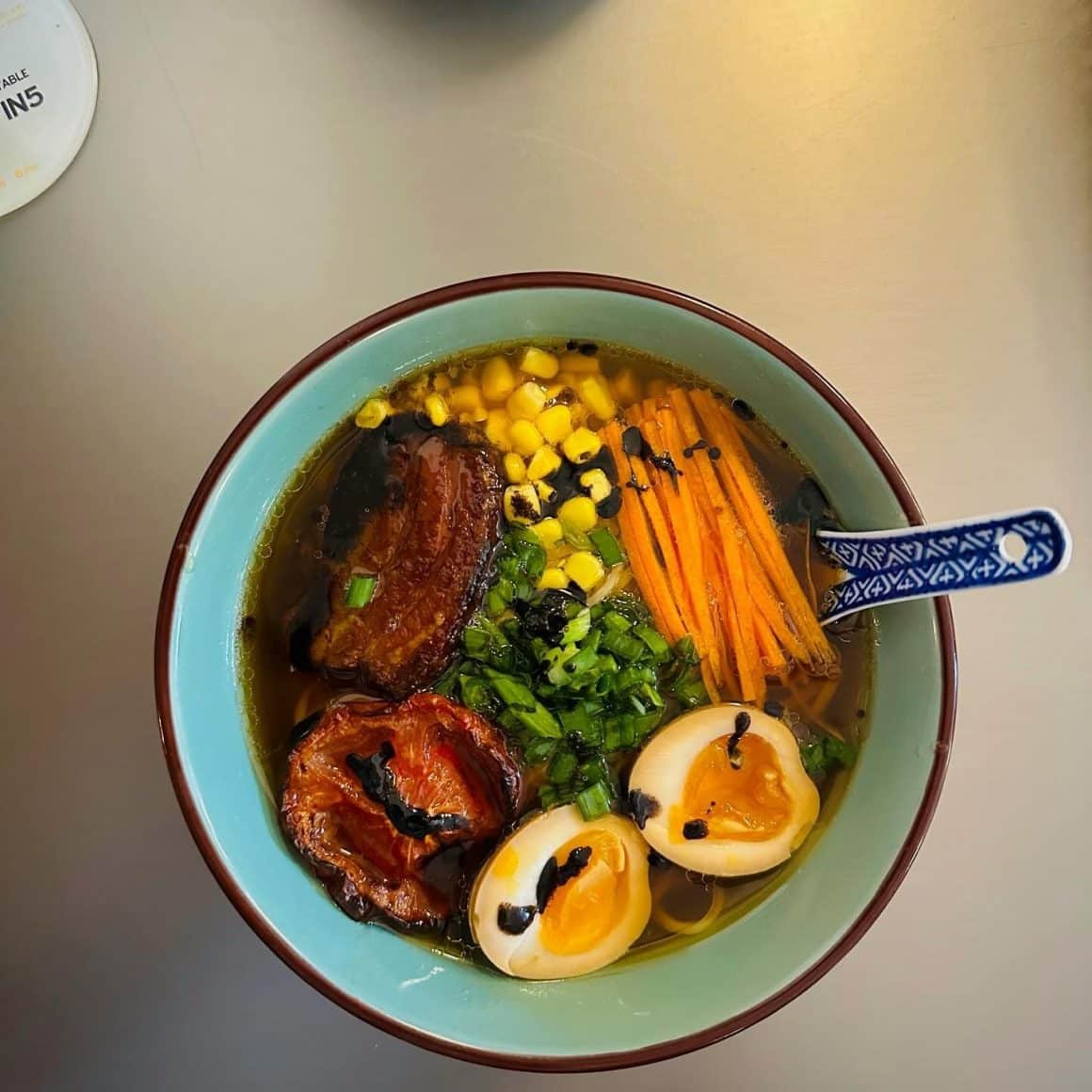 Unul din preparatele cu care se mândresc cel mai mult e ramen-ul. Supa este gătită lent timp de 16 ore, carnea de vită este gătită sous-vide, noodles sunt fresh, aduși din Japonia, iar toate ingredientele pe care le folosesc pentru preparare sunt de la fermă. Și partea cea mai bună e că îl servesc zilnic, de luni până duminică. Însă ca să reușească să facă asta, numărul de porții e limitat. Iar orele între care poate fi comandat sunt între 12:00 și 17:00.