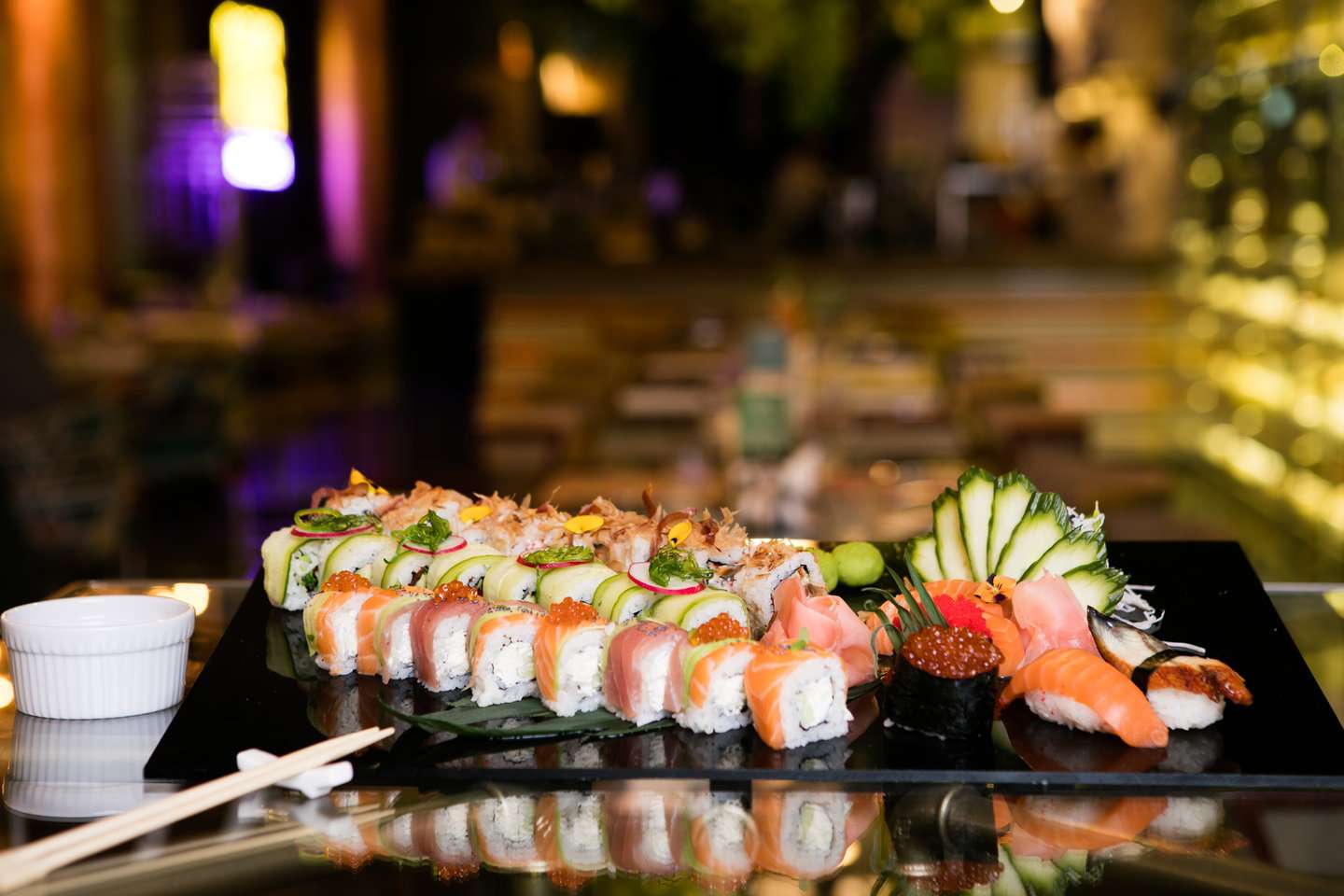 Chefs iti propune sa incerci delicioasele Sushi cu creveti, somon, ton sau Gunkan cu Caviar Rosu, Tobiko, Spicy Salmon, si multe alte preparate de acest gen, pregatite de Chef-ul rus Natasha, cu ingrediente proaspete de prima clasa, care va vor reda placerea de a va bucura de gustul apetisant al mancarurilor asiatice, alaturi de familie si prieteni.